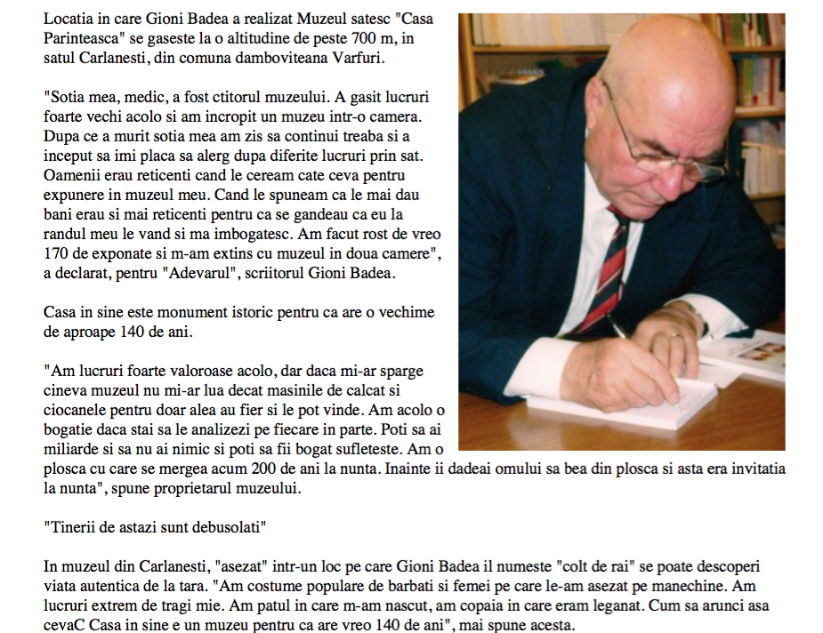 Gioni Badea – cetățean de onoare al comunei Vârfuri- Dâmbovița